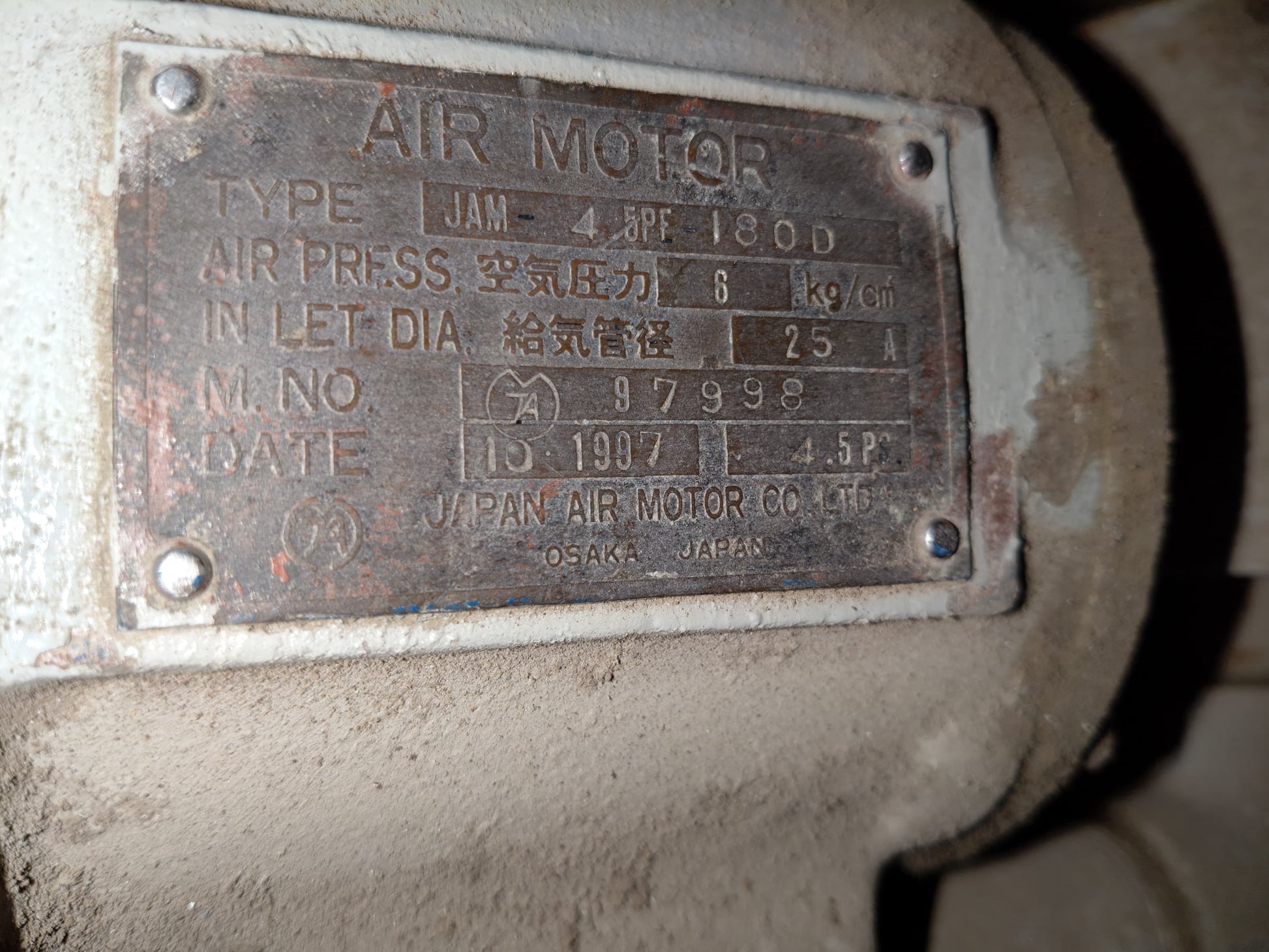 JAM-4.5PF 180D JAPAN AIR MOTOR-TESTED