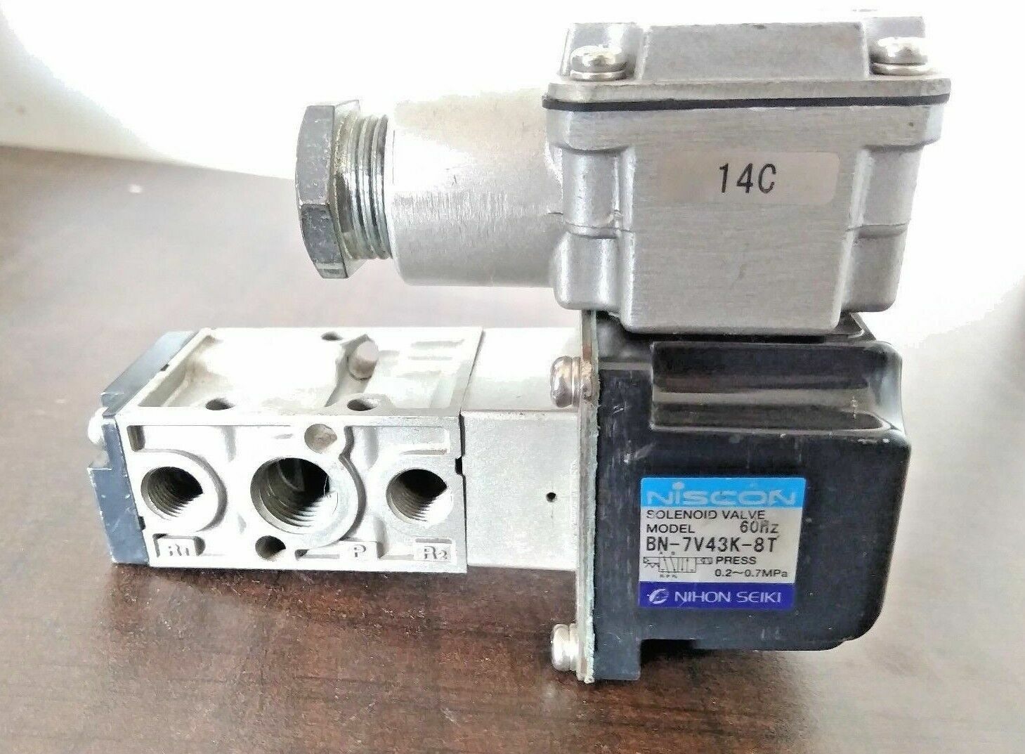 Niscon Solenoid Valve Nihon Seiki Model: BN-7V43K-8T 60Hz Press: 0.2~0.7 Mpa