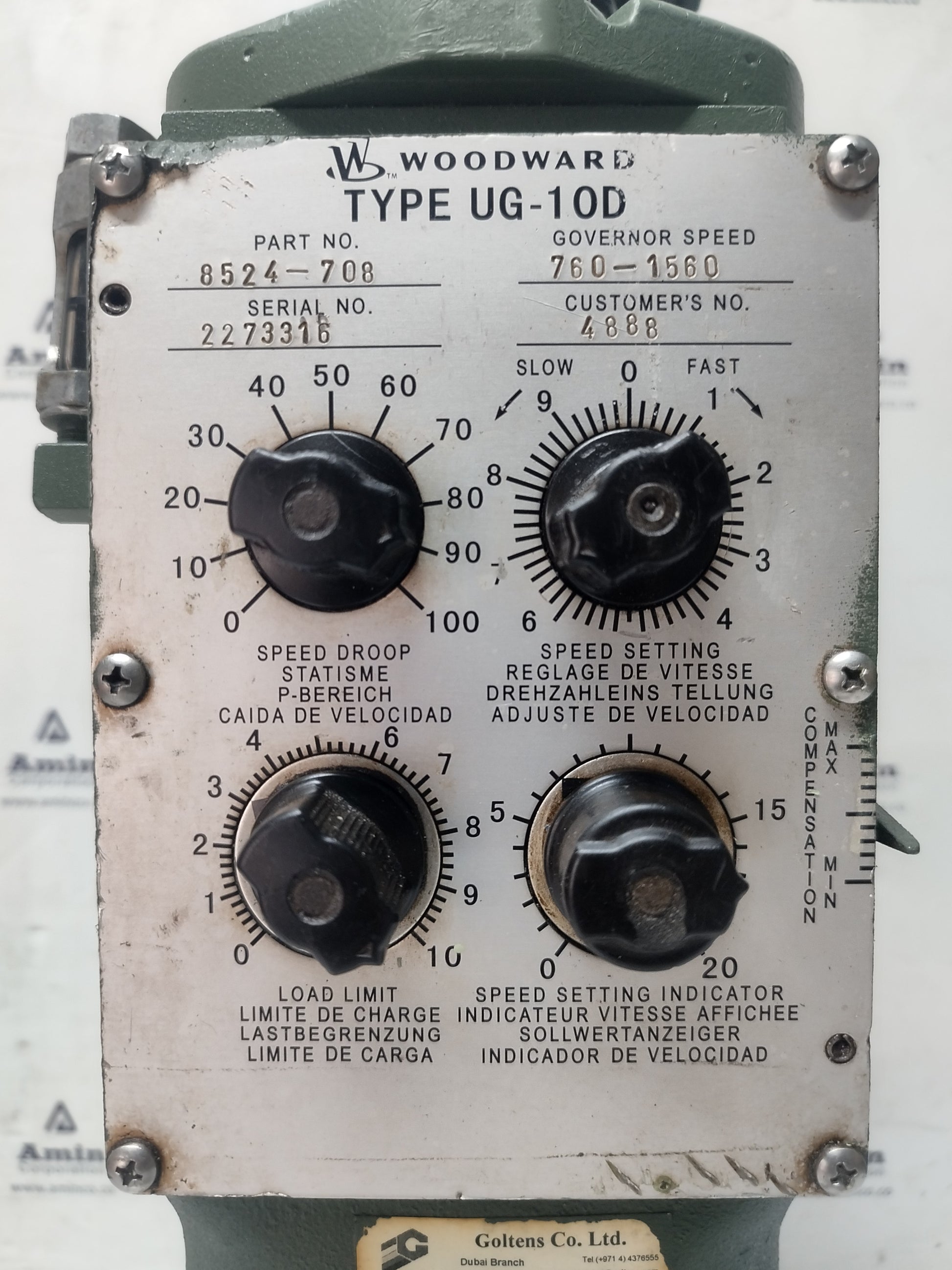Woodward Governor UG-10D P/N: 8524-708 RPM: 760-1560 - Tested 6 months Warranty
